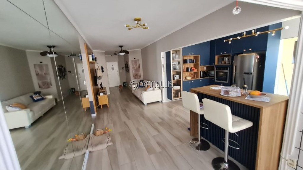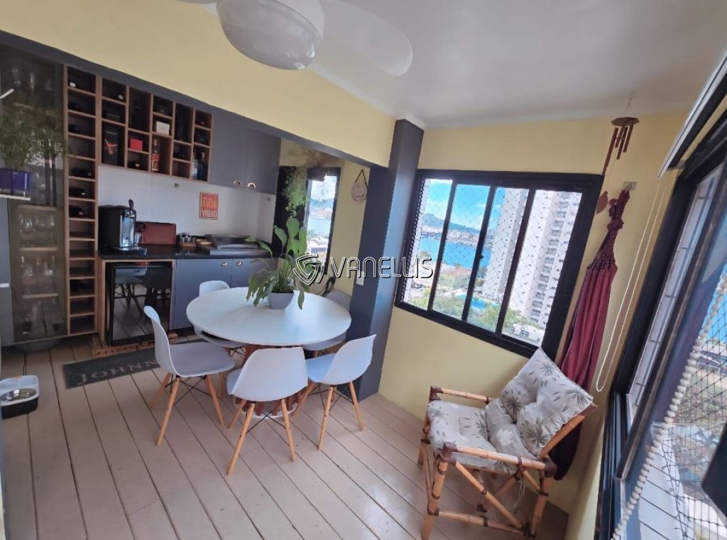 Apartamento com vista privilegiada para o mar no 8° andar. Possui : 2 dormitórios (1 deles com suíte), sala integrada com a cozinha, espaço gourmet com vista mar, área de serviço, móveis planejados em todos os ambientes (todos ficarão), ar condicionado nos quartos.